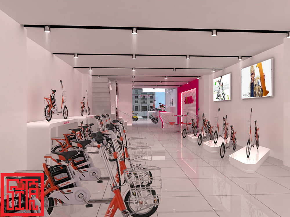 Dự án showroom xe đạp điện AIMA Hà Nội do Sĩ Tấn thiết kế & thi công mang đến không gian trưng bày hiện đại, năng động, phản ánh rõ nét tinh thần “xanh – sạch – tiết kiệm năng lượng” của thương hiệu.